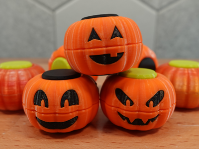 A small pumpkin fidget with magnetic clicks.