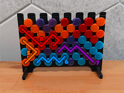 - Players take turns adding two tokens with their assigned color(s) into the board to create chains of their color.