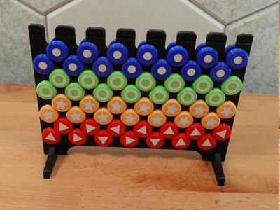 - Screw together all tokens. Threads should be loose enough to tighten by hand, but results will depend on filament used, print settings, and printer.