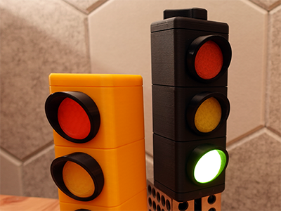Use this if you want a play-friendly non-electronic traffic light. Just skip adding the lenses and either paint or use vinyl stickers to give each layer of the solid shutter the desired light color. The solid shutter has indicator lines dividing the area to be colored. - No Shutter
