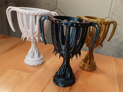 - The trophy comes in 2 nested parts. The intended challenge is to print these at the same time as shown.